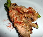 @ プレーンヨーグルト、おろしにんにく、昆布茶、醤油、ケチャップ、カレー粉、こしょう、パプリカをよく混ぜあわす。 A 北里八雲牛肉はスライスを広げた状態で@のタレを両面に塗り、10分〜15分冷蔵庫に入れておく(Cのアスパラ処理が終わるまで)。 B アスパラガスは1/2の長さに切り、沸騰した湯で2〜3分茹でる。 C アスパラガスが冷めたら、タレがついた北里八雲牛肉でアスパラガスを巻く D フライパンを中火で熱し、サラダ油を入れ、Cの肉を焼く。焦げないように注意 E 皿に盛り、パプリカを好みでかける。