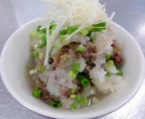 @ 牛肉を肉の下味調味料でよくもみ、片栗粉を混ぜる。 A飾り用の葉ねぎを小口切りに切る。生姜は針生姜(薄くスライスし千切りにする。)にしておく。 Bフライパンにだし汁を入れ、火にかける。沸騰したら@の牛肉を煮る。フライパンの肉汁がなくなっても、少し牛肉に焦げ目がつくまで炒め、火を止める。 C ボールに大根おろし、酢、塩を入れ、Bの牛肉と和える D Cを皿に盛り付け、上に葉ねぎをちらし、針しょうがを飾る。