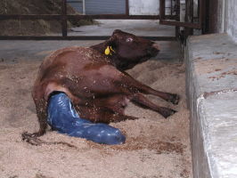 当牧場では分娩介護をすることは殆ど無く、自然に分娩します。新生子牛の下痢症は往年の悩みでしたが、現在は皆無に等しく、夏季間は放牧地分娩も行い成果を上げています。